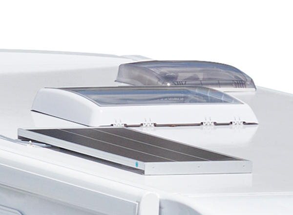 Per ricaricare la vostra batteria in modo efficiente, pratico ed ecologico, potrete scegliere come opzione di integrare uno o più pannelli solari nel vostro veicolo. Sono particolarmente efficaci d’estate e a metà giornata (quando l’irraggiamento solare è al suo massimo).
