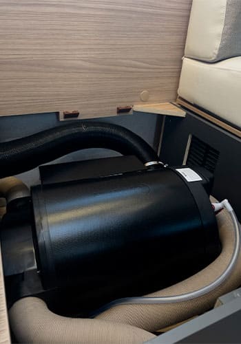 Quest’anno, abbiamo scelto il sistema di riscaldamento Truma® Combi D 6E. A differenza di altri riscaldatori della stessa marca, questo non richiede gas poiché è un sistema ibrido che funziona a elettricità e diesel. Questo sistema di riscaldamento offre 3 vantaggi che vi permetteranno di migliorare il vostro comfort a bordo: