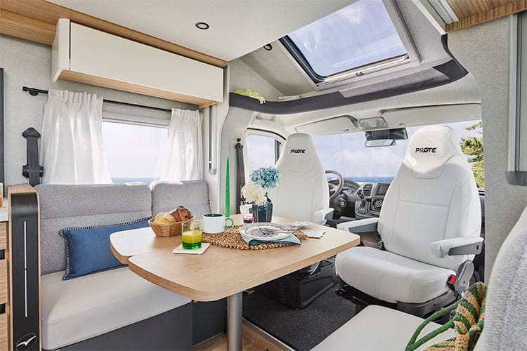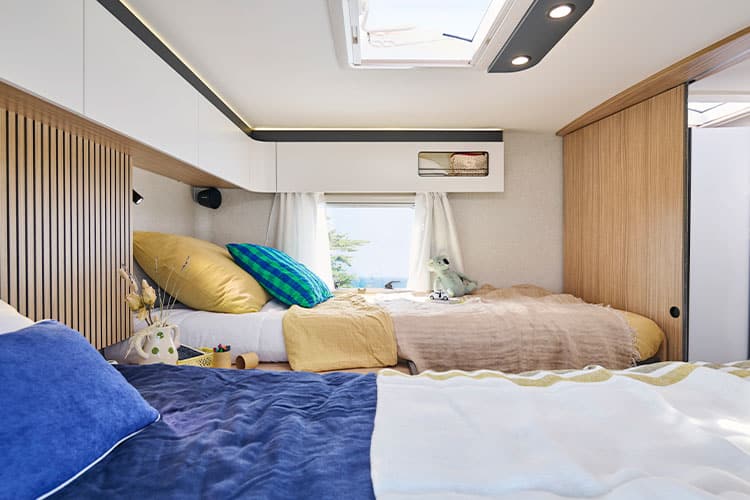 - Gavone regolabile in altezza elettricamente sotto il letto centrale (solo sui modelli P720FC e P740FC), per ottenere ancora più volume di stivaggio.
